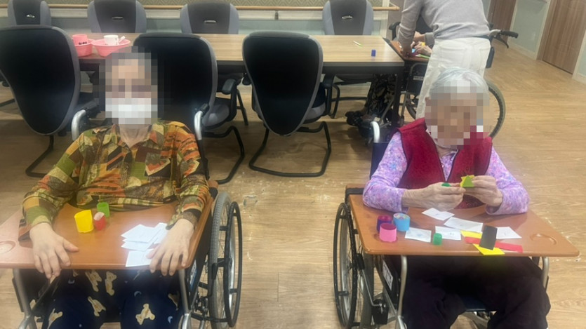 종이 오려붙이기 미술프로그램과 음악신체 리듬 시간에 귀로막대라는
