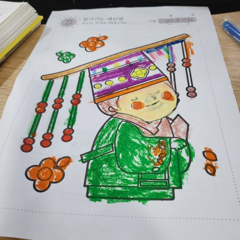 저번시간에는 우리 교하참사랑어르 신들과 멋있는 새신랑 색칠하기