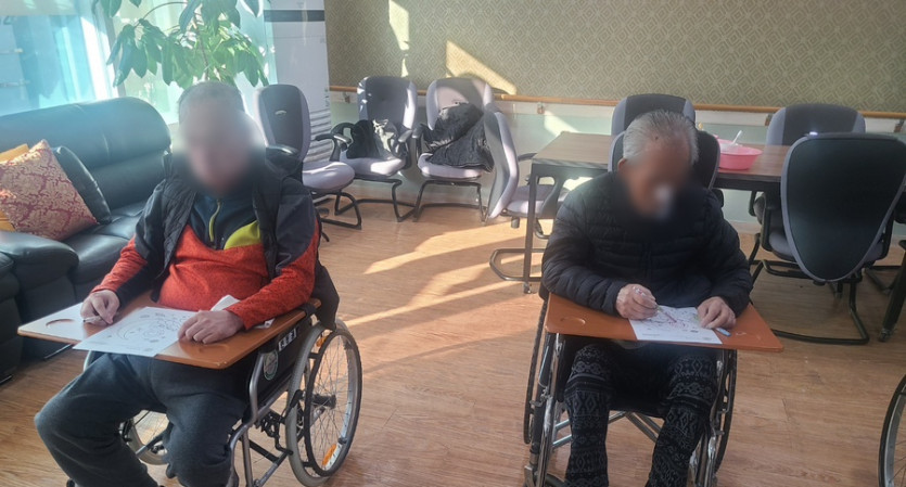 우리 어르신들께서 선생님들과 함께 한장, 어르신 혼자서 개성있는 색으로 한장