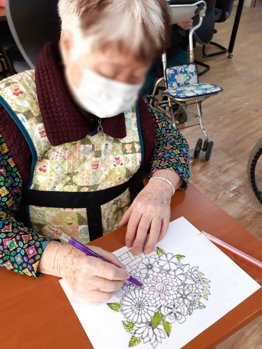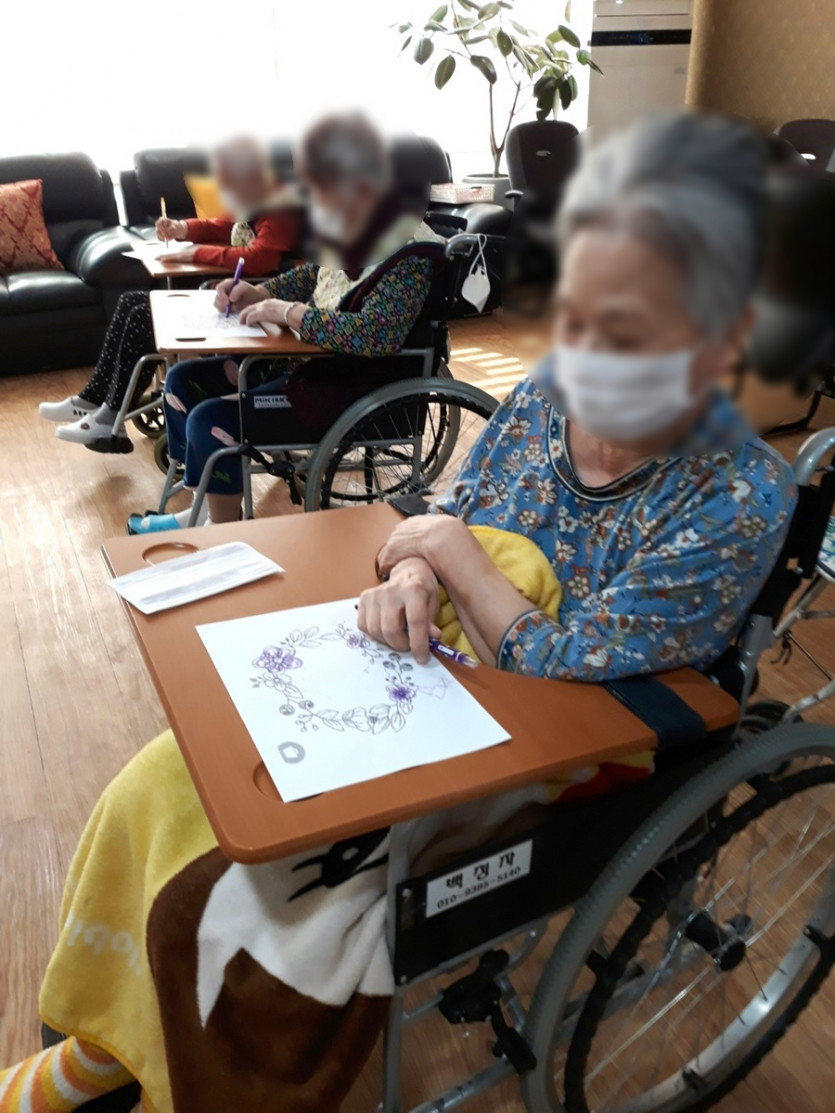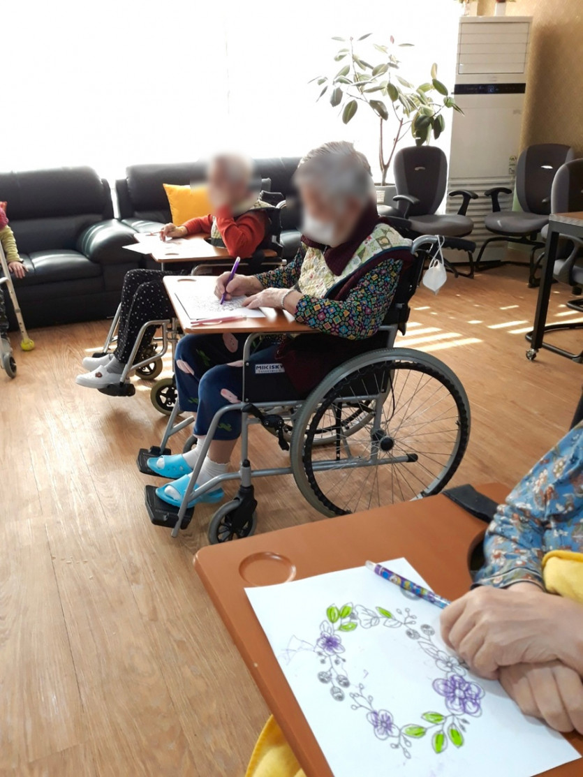 색칠하기는 창의력과 동시에 손을 움직이며 선생님들과 함께 상호작용을 하며 잔존기능을 향상하는데