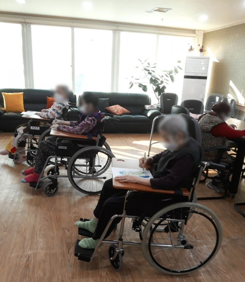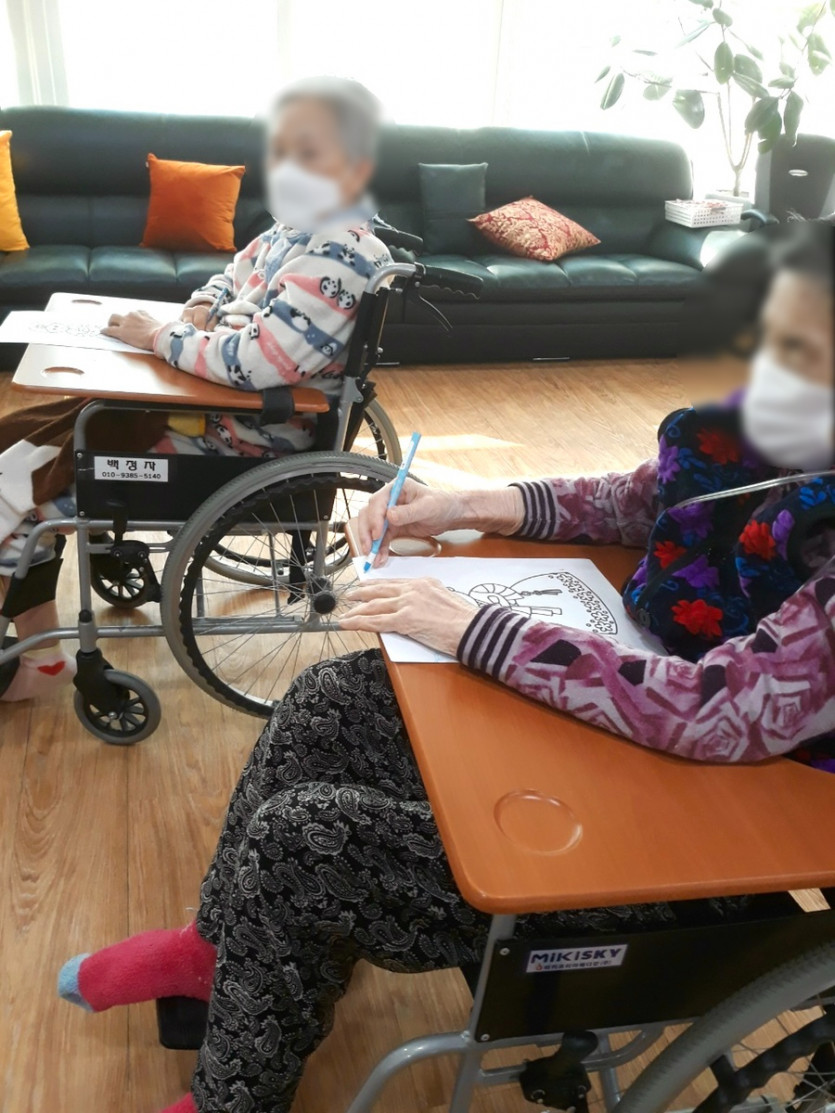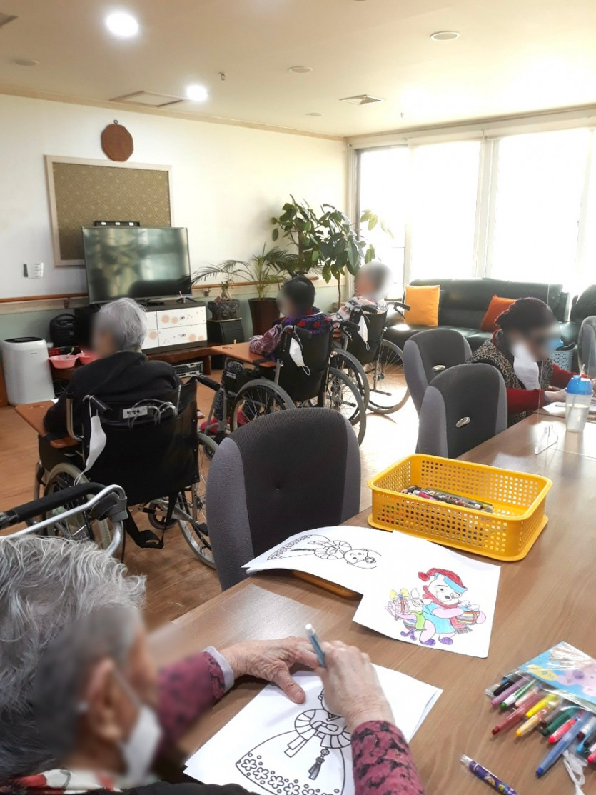 우리 어르신들과 함께 전통 한복 색칠하기 프로그램을 진행하였습니다.