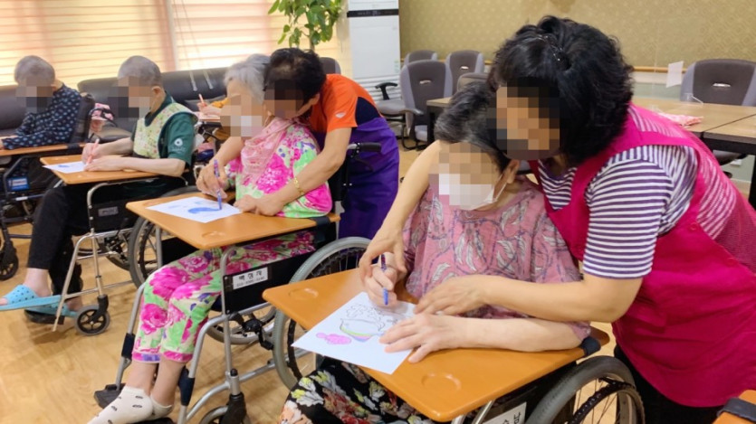오늘은 저희 선생님들과 어르신들 모두 즐거운 바닷속 친구들을 그리기를 하였습니다.