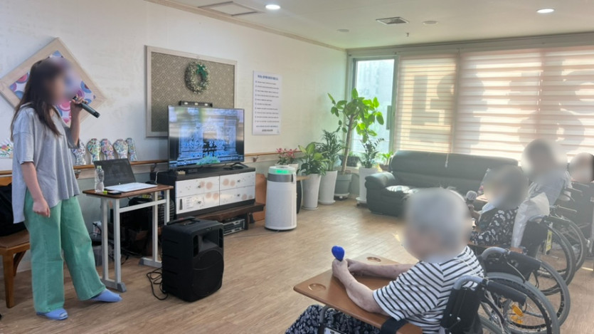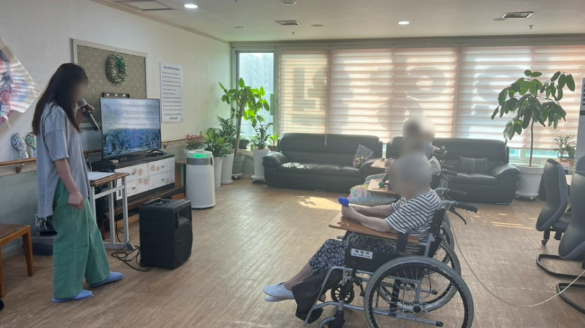 마라카스 연주와 함께 즐거운 노래방 프로그램을 진행했습니다.