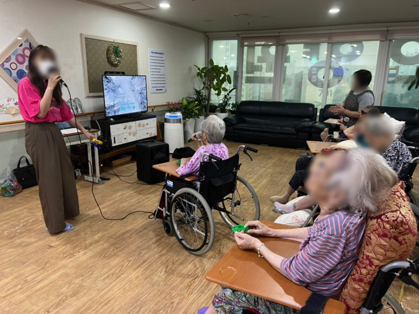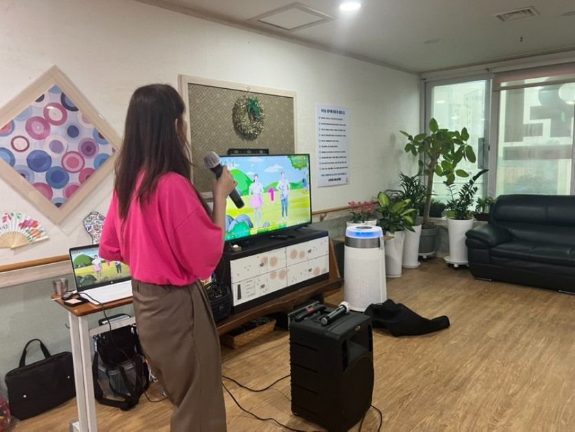 우리 노래왕 어르신께서 선생님과 함께 노래를 불러주시고